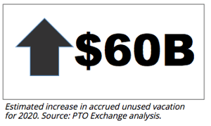 If current trends continue, companies could see an increase of about $60B in accrued PTO liability for all of 2020. According to WorldatWork, about $365B of PTO was accrued in 2019 across all companies and organizations in the US.